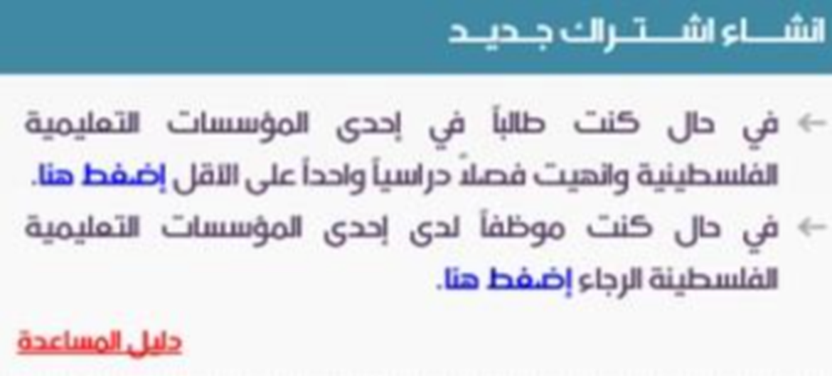 2. يتوجب على الطلبة الذين ليس لديهم حساب في موقع الصندوق الدخول إلى الموقع وإنشاء اشتراك جديد عن طريق https://eservices.iqrad.edu.ps/StuReg