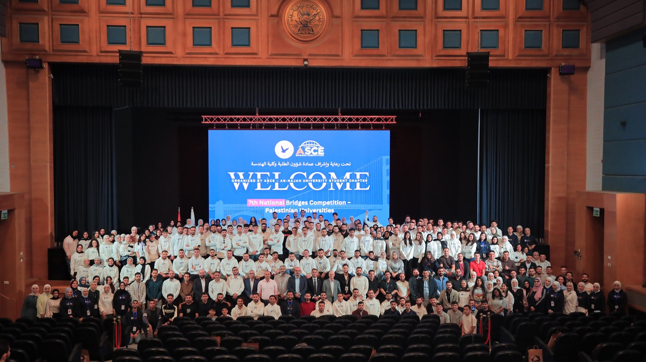 افتتحت عمادة شؤون الطلبة وكلية الهندسة في جامعة النجاح الوطنية اليوم الجمعة الموافق 31/10/2025 فعاليات البطولة الوطنية السابعة لمسابقة الجسور الخشبية التي تنظمها الجمعية الأمريكية للمهندسين المدنيين الفرع الطلابي لجامعة النجاح (ASCE) تحت إشراف ومتابعة عمادة شؤون الطلبة، ووسط اهتمام عالمي من قبل الجمعية، وذلك انطلاقا من رؤية الجامعة في تحقيق أهداف التنمية المستدامة ومنها التعليم الجيد، والصناعة والابتكار والهياكل الأساسية، ومدن ومجتمعات مستدامة، وعقد الشراكات لتحقيق الأهداف .