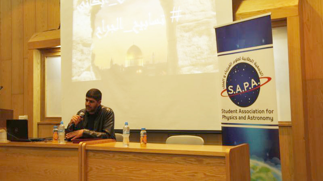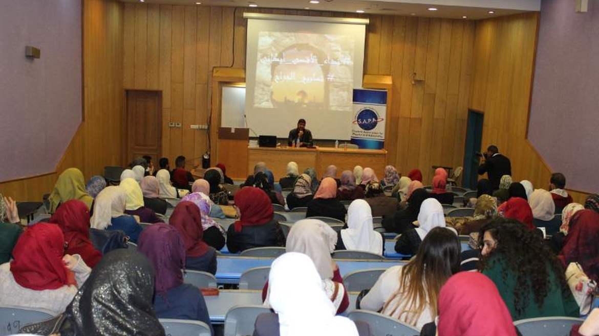 نظّمت الجمعية الطلابية لعلوم الفيزياء والفلك (S.A.P.A.) في جامعة النجاح الوطنية يوم الخميس الموافق 25/2/2016، ندوة بعنوان (نداء الأقصى أبكاني)، وذلك في مدرج كلية العلوم في الحرم الجامعي الجديد.