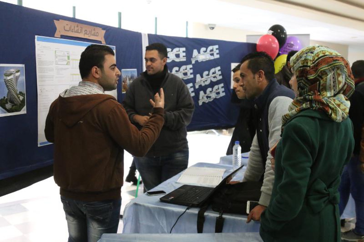 نظّم الفرع الطلابي للجمعية الأمريكية للمهندسين المدنيين في كلية الهندسة وتكنولوجيا المعلومات في الجامعة، يوم الأربعاء الموافق 30/11/2016، معرضاً لمشاريع تخرج طلبة قسمي الهندسة المدنية والبناء، حيث أُقيم المعرض في ساحة شطرنج كلية الهندسة وتكنولوجيا المعلومات.