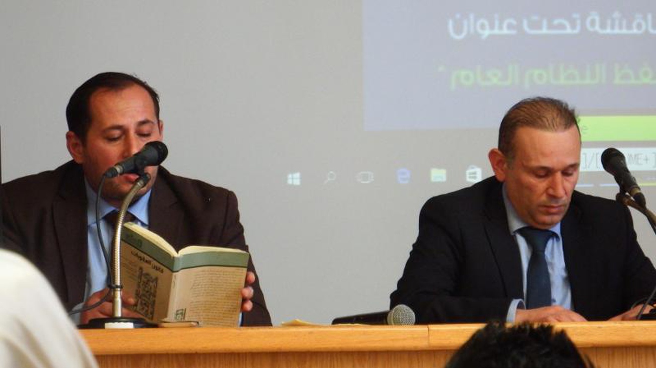 و افتتح المناقشة الدكتور مؤيد حطاب، عميد كلية القانون، بحضور عدد من أعضاء الهئية التدريسية في الكلية، وحشد من الطلبة بمختلف التخصصات.