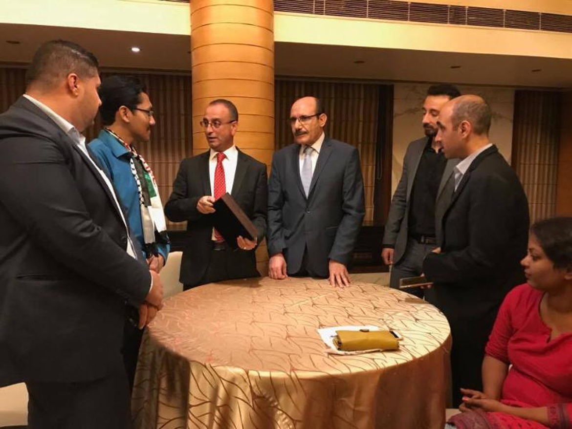 وشارك في الملتقى وفد فلسطيني من عدّة جامعات، حيث التقى الوفد الممثّل بقيادة الأستاذ مروان مروان وشاحي بالسفير الفلسطيني في نيودلهي السيد عدنان أبو الهيجاء، وتخلل اللقاء عدّة محاور أهمها تعزيز دور التبادل الثقافي في تعزيز التفاهم المتبادل بين الشعبين الفلسطيني والهندي.