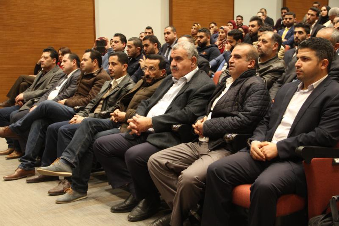 وكان في استقبال الوفد الضيف الأستاذ الدكتور ماهر النتشة، القائم بأعمال رئيس الجامعة، والدكتور جوني عاصي، عميد كلية القانون ومدير كرسي اليونسكو للديمقراطية وحقوق الإنسان في الجامعة، وخالد مفلح، القائم باعمال مدير دائرة العلاقات العامة وعدد كبير من أعضاء الهيئتين الأكاديمية والإدارية لكلية القانون.