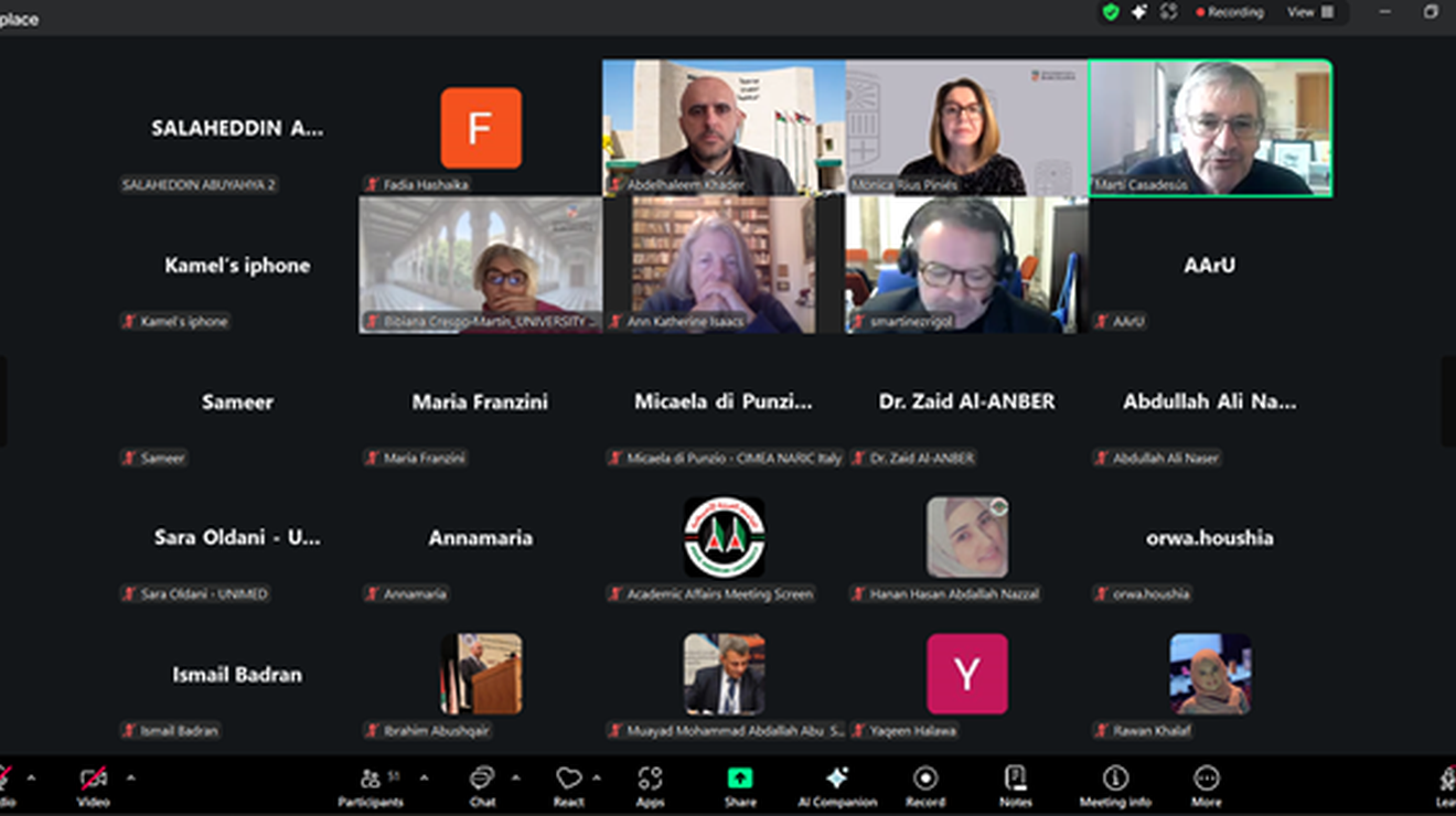 وعُقدت الدورة التدريبية الأولى بتاريخ 15 كانون الثاني 2026 تحت عنوان "من خطة بولونيا إلى المعايير والإرشادات الأوروبية لضمان الجودة (ESG) ودور هيئات ضمان الجودة الخارجية"، وقدمها البروفيسور Martí Casadesús من جامعة جيرونا، حيث استعرض تطور عملية بولونيا، ومبادئ المعايير الأوروبية لضمان الجودة، ودور هيئات الاعتماد الخارجية في تعزيز الشفافية والمساءلة وبناء ثقافة جودة مستدامة داخل مؤسسات التعليم العالي، مع تسليط الضوء على تجربة هيئة ضمان الجودة الكتالونية (AQU Catalunya). وقد شارك في هذه الدورة نحو 55 مشاركًا من الجامعات الفلسطينية والأردنية الشريكة.