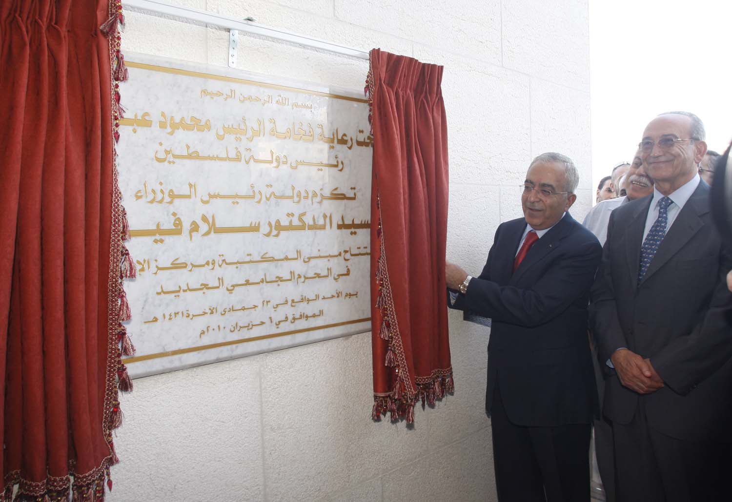 برعاية فخامة الرئيس محمود عباس وبحضور دولة رئيس الوزراء الدكتور سلام فياض ممثلا عن سيادته: الجامعة تطلق شعلة احتفالات الفوج الثلاثين من طلبتها بحضور وبمشاركة شخصيات سياسية ووطنية فلسطينية وتفتتح مكتبة الجامعة ومركز الاعلام والنفق والمستودعات المركزية