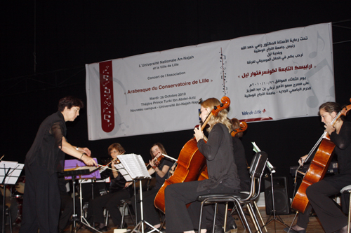 نظمت جامعة النجاح الوطنية وبلدية ليل الفرنسية امسية موسيقية فنية لفرقة ارابيسك التابعة لكونسر فتوار ليل الفرنسية وذلك تحت رعاية الاستاذ الدكتور رامي حمد الله، رئيس الجامعة وبلدية ليل الفرنسية، ونظمت الامسية في مسرح سمو الامير تركي بن عبد العزيز واشتملت على العديد من المقطوعات الغربية والشرقية عزفتها الفرقة امام المئات من الحضور الذين قدموا لمشاهدة هذه العروض، كما قدمت جوقة جامعة النجاح الوطنية التابعة لكلية الفنون الجميلة مقطوعات موسيقية شرقية نالت اعجاب الحضور.