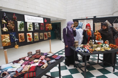 افتتح اليوم الاثنين في كلية الفنون الجميلة معرض التطريز والاعمال اليدوية للفنانة هبة الفداوي بتنظيم من جمعية بيت الصداقة الفلسطيني وبالتعاون مع كلية الفنون الجميلة ودائرة العلاقات العامة في جامعة النجاح الوطنية، وقالت الفداوي " ان منتجات المعرض من صنع يدي وهو يهدف الى تعزيز دور المرأة الثقافي والاجتماعي وأننا كنساء نستطيع أن نفعل الكثير" وناشدت الفداوي المؤسسات المحلية والوطنية بمساعدة النساء في هذا المجال الحيوي بالنسبة لربات البيوت ونوهت الى أنها تحترف هذا المجال كهواية، بالاضافة الى تدربها في التطريز والاعمال اليدوية في دورات عقدتها عدد من المراكز في مدينة نابلس، وتمنت الفنانة الفداوي ان ينجح المعرض لتستمر بالعطاء في هذا المجال.