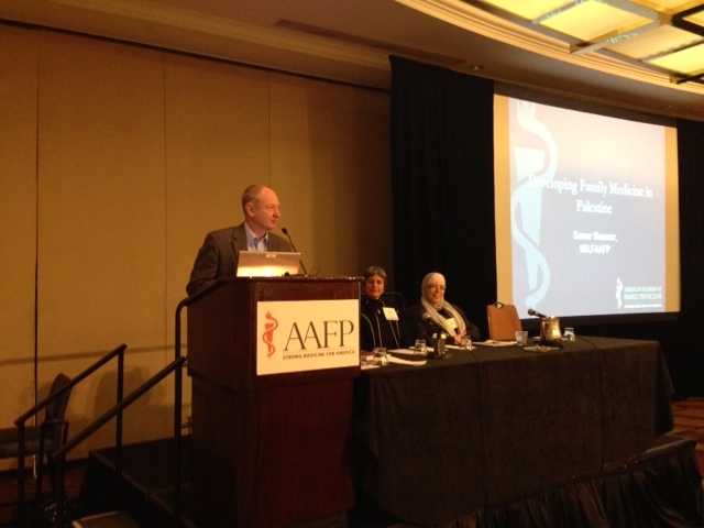 شاركت د.سمر مسمار، مديرة برنامج الاختصاص العالي لطب الاسرة بتقديم محاضرة افتتاحية في المؤتمر السنوي للجمعية في مدينة بلتيمور، ولاية مريلاند في الولايات المتحدة الامريكية في الفترة 9-12 10/2013 وذلك بناء على دعوة من الجمعية الامريكية لطب العائلة وكان عنوان المحاضرة ( تطوير طب العائلة في فلسطين ) (Development of Family Medicine in Palestine)