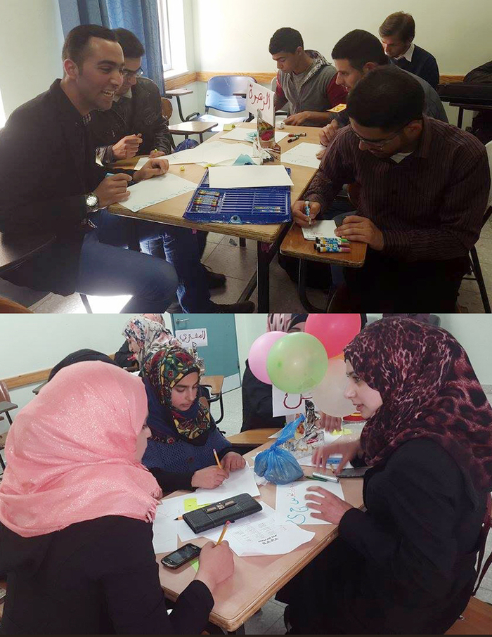 وفي الفقرة الثانية من عمر الورشة التدريبية، نفّذ الطلبة نشاطاً تفعالياً بعنوان "كيف تدرس" تحدثوا فيه عن المشاكل التي تواجههم في الدراسة وطبيعة حياتهم الجامعية، بهدف إيصال المحتوى المطلوب بأيسر الطرق، وكذلك تم مناقشة موضوع تقدير الذات وأهميته في تحفيز الشخص على النجاح.