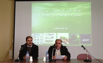 نظمت كلية الإعلام في الجامعة، وبالتعاون مع مركز التعليم البيئي المُنبثق عن الكنيسة الإنجيلية اللوثرية في الأردن والأراضي المقدسة، ورشة عمل ونقاشاً مفتوحاً حول "الإعلام البيئي في فلسطين: تحدياته، وحضوره، وعوائقه، وسبل تطويره"، وذلك يوم الأربعاء الموافق 19/12/2012، في قاعة مؤتمرات المعهد الكوري الفلسطيني المتميز لتكنولوجيا المعلومات في الحرم الجامعي الجديد.
