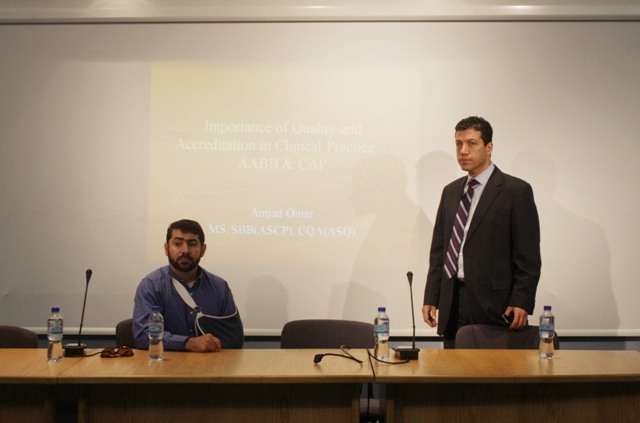 عقدت كلية الطب وعلوم الصحة في جامعة النجاح الوطنية، بالتعاون مع مركز السموم والتحاليل الكيماوية والبيولوجية، يوم الثلاثاء الموافق 26/8/2014م، محاضرة بعنوان "أهمية الجودة والاعتماد في الممارسات السريرية"، ألقاها السيد أمجد عمر، مستشار الاعتماد والتطوير للأنظمة في الممارسات السريرية.