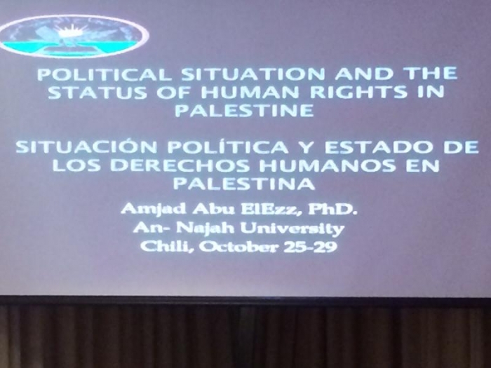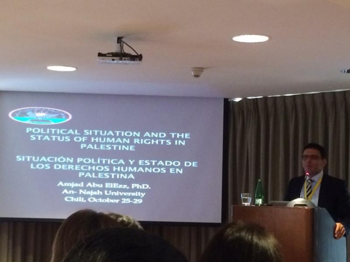 شارك الدكتور أمجد أبو العز، عضو هيئة التدريس في قسم العلوم السياسية في جامعة النجاح الوطنية، في مؤتمر عالمي نظمته جامعة سانتياغو تشيلي خلال الفترة بين 27-31/10/2015.