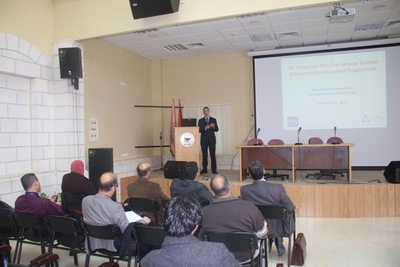 وفي كلمة جامعة النجاح الوطنية، رحب أ.د. غسان الحلو، عميد كلية العلوم التربوية بضيوف الجامعة، وعرض أهمية المشروع لكلية العلوم التربوية وقسم المناهج وطرق التدريس، ودعا إلى الاهتمام بنتائج المشروع، ودمجها في برامج إعداد معلم اللغة الإنجليزية في الجامعات الفلسطينية.