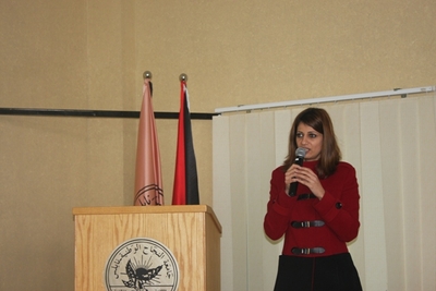 وعرضت أ. ناريمان منصور، منسقة المشروع، مراحل المشروع بدءاً من تطوير قدرات العاملين في تعليم اللغة الإنجليزية، والزيارات الدراسية المساندة لذلك من حيث تطوير مساقات في تعليم اللغة الإنجليزية وإدارة تعليمها.
