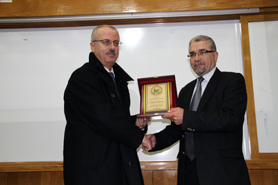 وفي ختام الحفل قدم الأستاذ الدكتور رامي حمد الله درعا تقديرية لأهل الفقيدة، كما قدم اللواء البكري، والسيد العالول، دروعا تقديرية أخرى.