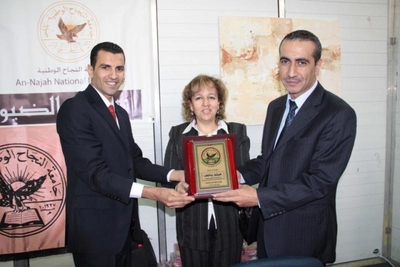 وقدم وفدش جامعة النجاح الوطنية درعا تقديريا لمعالي الوزيرة وللسيد يخلف على جهودهما في انجاز ودعم هذا المعرض.