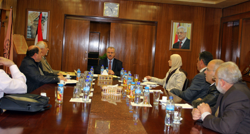 وفي بداية اللقاء رحب أ.د.حمد الله باعضاء الهيئة وأكد لهم دعمه ودعم الجامعة للهيئة بتقديم مقر دائم ومجهز باللوازم الضرورية لعملها في داخل الجامعة، كما اقترح د.حمد الله ان يضاف للهيئة عارفون باللغة الايطالية والصينية والاسبانية، وكما دعا ان تضم ايضا كافة اطياف الشعب الفلسطيني المتخصصين بالترجمة بحيث تتسع دائرتها لمزيد من الاعضاء من جامعات ومؤسسات فلسطينية مختلفة.