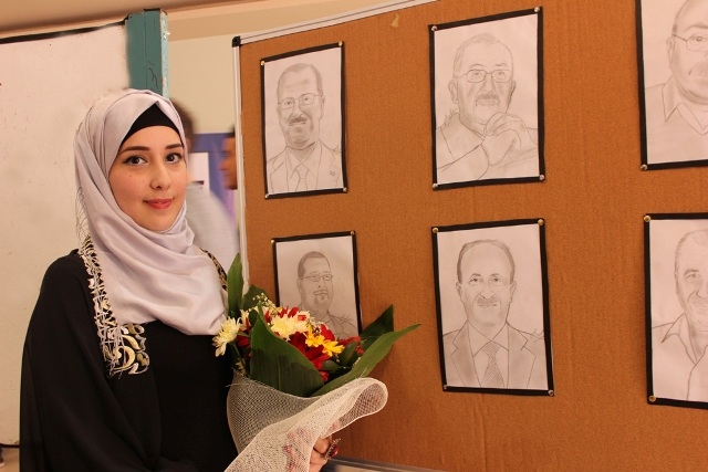 الطالبة أصالة ناصر تنظم معرض رسوماتٍ بالرصاص يجسّد العاملين في كلية الهندسة وتكنولوجيا المعلومات في الجامعة