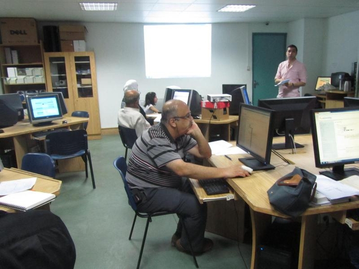 حيث تم البدء بإنشاء مساقات الفصل الأول 2014/2015 وتدريبا عمليا على كيفية تصميم المساقات الالكترونية وادارة محتواها باستخدام موودل.