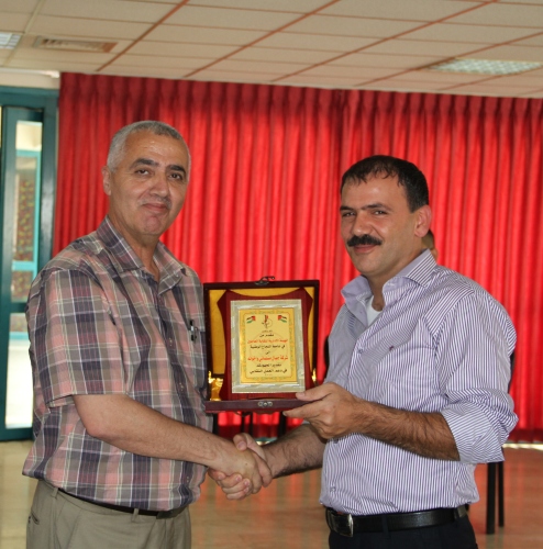 وفي ختام الاحتفال قام الاستاذ حسام نجيب بتقديم درع تقديري للاستاذ الدكتور رامي حمد الله، على دعمه وكذلك تقديم الدروع التقديرية للشركات والمؤسسات والاشخاص الذين قدموا الدعم للنقابة والعاملين في الجامعة.