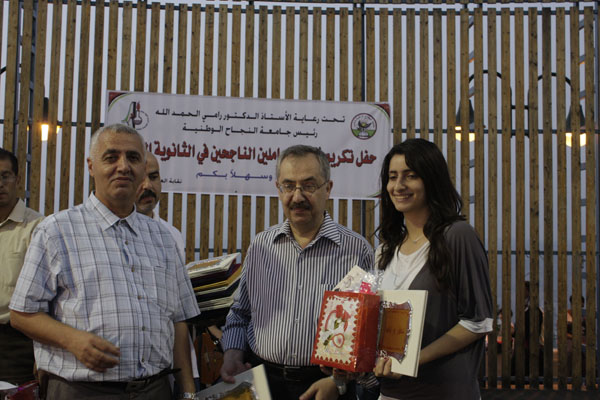 أقامت نقابة العاملين في الجامعة يوم امس حفلا تكريميا لابناء العاملين الذي إجتازوا إمتحان الثانوية العامة هذا العام وذلك بحضور الاستاذ الدكتور ماهر النتشة ممثلا عن رئيس الجامعة، وعدد من نواب الرئيس ومساعديه وعدد من العمداء في الجامعة ومدير شرطة محافظة نابلس وعدد من ممثلي المؤسسات في المدينة.
