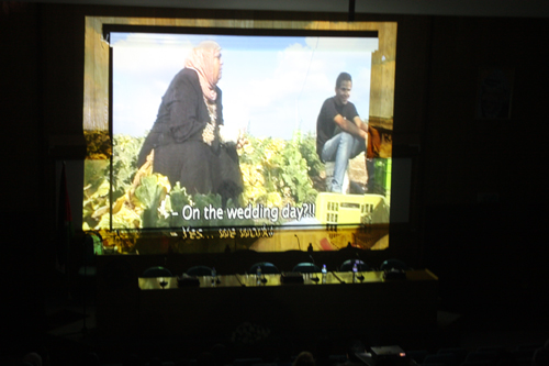 الفيلم الآخر الذي تم عرضه "أم العريس" لراية عروق، يتحدث الفيلم عن أم عدنان امرأة فلاحة تعمل في موسم الصيف في الحقل صباحاً وبعد الظهر، وتحضر لعرس ابنها، حيث يظهر هذا من خلال "ترويب" اللبن وتجهيز الحناء، وأيضاً سهرة النساء مساءً، قبل العرس.