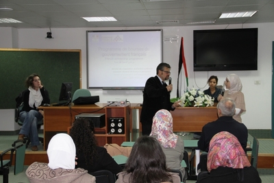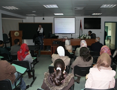 بعد ذلك قدمت الانسة جولي بيلمون عرضاً بينت فيه اهمية الدراسة في فرنسا ولماذا يفضل الطلبة عادة الدراسة فيها وأكدت على ان الهدف من تلك المنح هو تقديم كل الفائدة لمن يرغب باكمال دراسته العليا ليعود بالفائدة على شعبه وبلده فلسطين، وكذلك تمت الاشارة الى الشروط المطلوبة حتى يتمكن الطالب من الدراسة هناك.