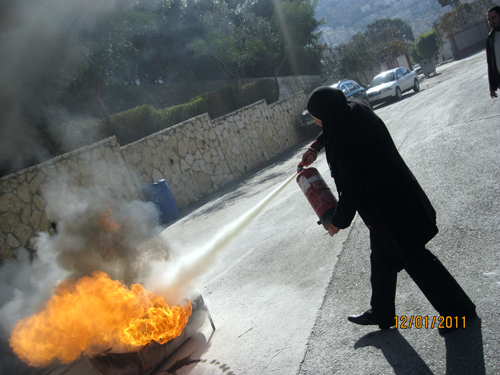 كرمت لجنة السلامة العامة في الجامعة يوم الخميس الموافق 13/1/2011 المشاركين في دورة اساسيات في الاطفاء وتحليل المخاطر الذي تم عقدها للعاملين المشاركين من كليات الجامعة المختلفة والمراكز العلمية ومكتبة الجامعة. وقد قام السيد عصام سليم، من اطفائية بلدية نابلس بالاشراف على الدورة المذكورة التي اشتملت على النواحي العملية والنظرية، كما قام الدكتور جلال الدبيك، مدير المراكز العلمية ومدير مركز علوم الأرض وهندسة الزلازل وعضو لجنة السلامة العامة باعطاء محاضرة قيّمة تتعلق بتحليل المخاطر. وفي نهاية الدورة تم توزيع الشهادات على المشاركين وتم تقديم شهادة شكر وتقدير لمدرب الدورة.