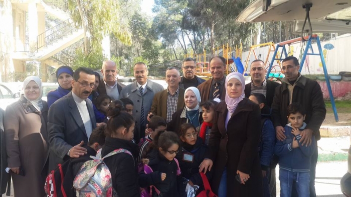 في حين كان في إستقبال الوفد السيدة لطيفة النفاع، رئيسة جمعية تأهيل رعاية الكفيف، وأعضاء الجمعية: بسام هب الريح، وناصر جرادات، وبلال الأحمد، بالإضافة إلى السيدة سمر أبو الوفا، مديرة مدرسة النور، وأعضاء الهيئة التدريسية وجمهور الطلبة من مختلف المراحل الدراسية.