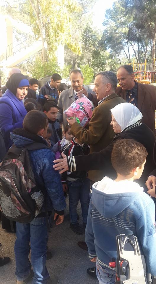 ووزع الوفد باسم جامعة النجاح الوطنية ملابس شتوية على طلبة المدرسة مقدّمة من مؤسسة الصوالحي التجارية.