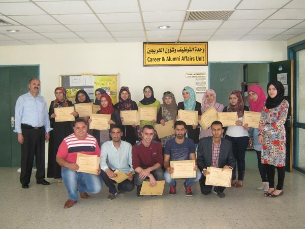 إختتمت وحدة التوظيف وشؤون الخريجين يوم الثلاثاء، الموافق 16/6/2015، الدورة الثامنة والعشرين من سلسلة دورات حاسوبك في العمل، والتي سجّل فيها (16) طالباً وطالبةً من تخصصات مختلفة واستمرت لمدة أسبوعين بواقع عشرين ساعة تدريبية.