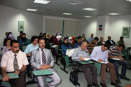 الاستاذة عصمت الشخشير من جامعة النجاح تحدثت عن الفلسطينيين وكيفية الخروج من الأزمة الراهنة وذكرت قبل المحاضرة بان الاحتلال لا يزال على الارض وان الشعب الفلسطيني لا يزال يعاني والمصادرة للارضي تزداد يوما بعد يوم والمستوطنات ُتبنى بتسارع والجدار قضم الارض الفلسطينية في الضفة الغربية وتحدثت عن السياج الفاصل في غزة وعن الحاجز البحري الممتد على طول غزة وتحدثت عن الانقسام الذي اضر القضية الفلسطينية.