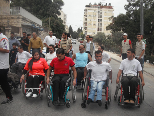وقد وتضمن اليوم الرياضي مجموعة من الأنشطة الخاصة بذوي الإعاقة، حيث اشتمل على سباق الكراسي المتحركة، وشارك فيه ما يزيد عن 20 متسابقا من مختلف المدن المشاركة، وكانت نتائج هذا السباق كالتالي: فائزة عن فئة الإناث من ذوي الإعاقة البطلة فداء شقير، فائزين عن فئة الذكور – كراسي متحركة: المركز الأول البطل محمد خفناوي ، المركز الثاني محمد عابد من جنين المركز الثالث رائد الحويطي. اما في سباق الرميات الحرة، كرة سلة، فاز في هذه المسابقة، المركز الأول محمد حفناوي، المركز الثاني يحيى بشار، المركز الثالث علي الحاج احمد، اما سباق تنس طاول وقوف إعاقات حركية، وفاز في هذه المسابقة، المركز الأول علي الحاج احمد، المركز الثاني عثمان أبو السباع، المركز الثالث رفيق أبو سيفين، وفي بطولة تنس طاولة جلوس، كراسي متحركة ، وفاز بالمركز الأول ماهر النقيب، رياض شخشير، وعصام دويكات طاولة تنس، إعاقة حركية إناث، وفاز بالمركز الأول نور عبد الجليل، المركز الثاني وفاء فطاير والمركز الثالث رشا داموني، وفي تنس طاولة كفيفين، إناث، وفاز في المسابقة، المركز الأول ميرفت مطاوع، سحاب أبو جيش وإخلاص اشتية، اما كفيفين رجال تنس طاولة، الأول رامي أبو راس، الثاني محمد خاروف.
