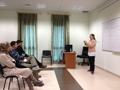 نظم برنامج التبادل الشبابي الدولي "زاجل"، التابع لدائرة العلاقات العامة في الجامعة في قاعة مؤتمرات مكتبة الحرم الجامعي الجديد، محاضرة حمل عنوان "الممارسات البيئية العالمية: آفاق جديدة"، قدمه بروفيسورة الأدب في الجامعة السيدة (Paula Kaufman)، بحضور عدد من الطلبة والمهتمين.