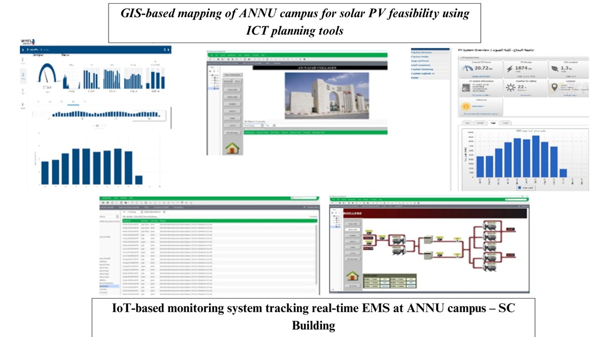 An-Najah National University (ANNU) has implemented several renewable energy initiatives to enhance sustainability across its campuses, integrating Information and Communication Technology (ICT) throughout planning, implementation, monitoring, evaluation, and revision of all programs related to energy and climate change.