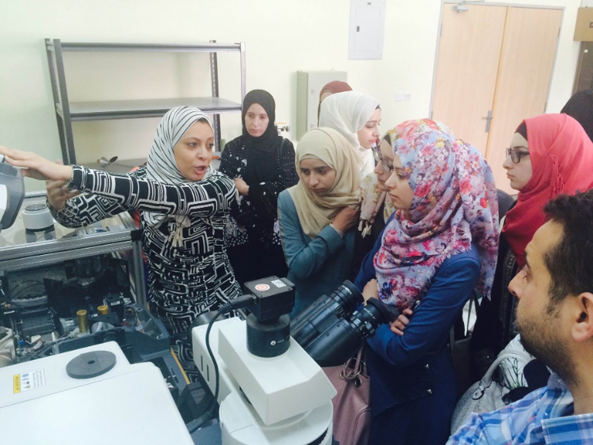 The delegation included Dr. Sami Jaber; Dr. Hadeel Abu Al-Rub and Dr. Ahmed Basalat; lecturers at the Physics Department in addition to a number of the university’s graduate and under-graduate students.
