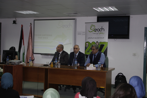 Mr. Anabtawi delivered a lecture in which he addressed the different aspects and issues related to Reach Company, its establishment, its objectives and activities, the system used in dealing with clients and others. He also described the Company's policy in dealing with its employees and how such policy enhances the productivity of the company. He further explained that the Company's principal aim is to study the needs of the local society so as to provide it with the necessary services. Mr. Anabtawi mentioned that around 60 % of the employees at Reach graduated from An-Najah.