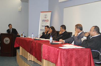 Dr. Mustafa Abdel Baqi, Director of Judicial Training and Legal Education at the Palestinian Justice Enhancement Program, said the Program aims to reinforce the practical courses in education which include moot trials and legal clinics, in addition to the reinforcement of legal research, which would enhance the skills and experience of both the staff and the students.