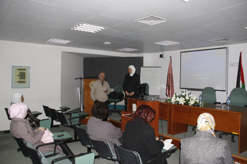 Dr. Khalid Eleiwi, Director of the Projects Unit, welcomed Dr. Kharouf and valued her visit to the University. In her lecture, Dr. Kharouf highlighted the important role that the Women’s Studies Center plays in giving women a pioneering role in the society and enables her to take an important position in the social life. She explained that the Center aims to conduct studies on women issues so as to help them achieve and develop their creative skills.