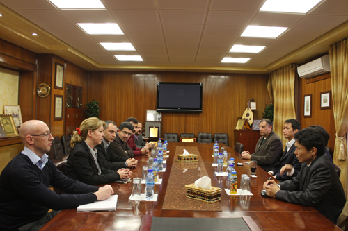 In the meeting, President Assistant for Strategic and International Affairs welcomed the delegation and valued their visit to the University. She then presented a summary in which she familiarized the guests with the University, its history, the academic majors and faculties it has as well as the scientific centers that it includes which offer a variety of services to the local society.