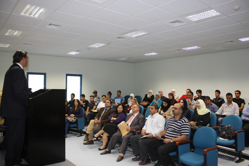 He then discussed the relationship between the two sides in terms of geography and other aspects of life. He described the conditions that he experienced and his perception of the situations in Palestine before and after the Second Uprising (Intifada). He explained to the audience that for a long time, most Europeans believed in the Israeli version of what goes on in Palestine while the Palestinian voice was usually totally ignored. But he assured that the international awareness is developing in favor of the Palestinians and more people are now fully aware of the reality of the conflict on ground.