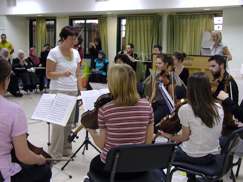 On November 4th 2010, as part of the Cooperation and Twinning Program between the University of Lille in France and An-Najah, the Faculty of Fine Arts at the University organized a special music workshop between members of the Arabesque Orchestra of the French Conservatory (Conservatoire de Paris) led by Maestro Anna Christina and a number of instructors and students at the Faculty. The workshop continued for three days in which more than 20 musicians participated.