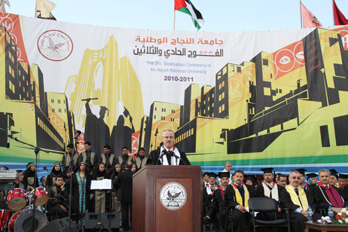 Prof. Hamdallah also pointed out that the University has attained a leading status locally, regionally and internationally and became among the best universities thanks to the dedicated efforts of its staff and administration. He also said that those graduates will become a vital part in the developmental process in Palestine and shall assume their place in the building of their country. He finally congratulated the students and their families on their graduation.