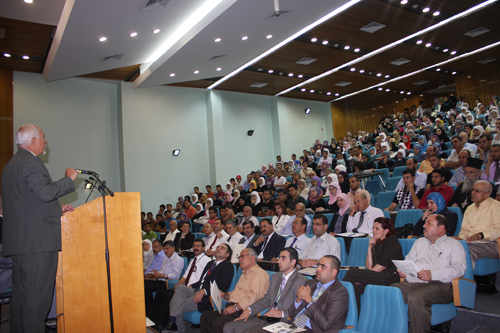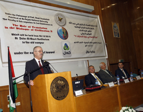At the conference's opening, Prof. Hamdallah delivered a speech in which he welcomed the participants and valued their attendance to the conference which he described as a major event in Palestine. He spoke about the importance of language and its role in the preservation of civilizations and cultures and said that a nation with a weak language can not survive. It is not wrong for a nation to move forward and develop as long as this development does not interfere or eliminate its culture or original values. Any nation must take and benefit from other nations but it should be aware not to let other cultures destroys its own culture.