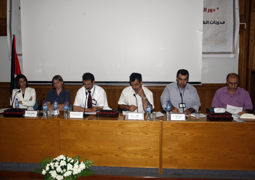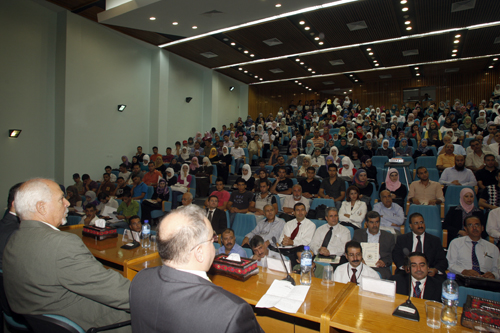 The conference was organized under the auspices of the University President, Prof. Rami Hamdallah, and supported by Jawwal (Palestine Cellular Communications Company) at the Martyr Zafer Al-Masri Auditoriums a the Old Campus. Attendees included: Dr. Maher Abu Zant, Dean of the Faculty of Arts, Prof. Yahya Jaber, Head of the Organizing Committee, Mr. Ameer Turkyyeh, as representative of Jawwal, in addition to a number of Palestinian, Arab and foreign scholars from the different Palestinian, Arab and international universities.