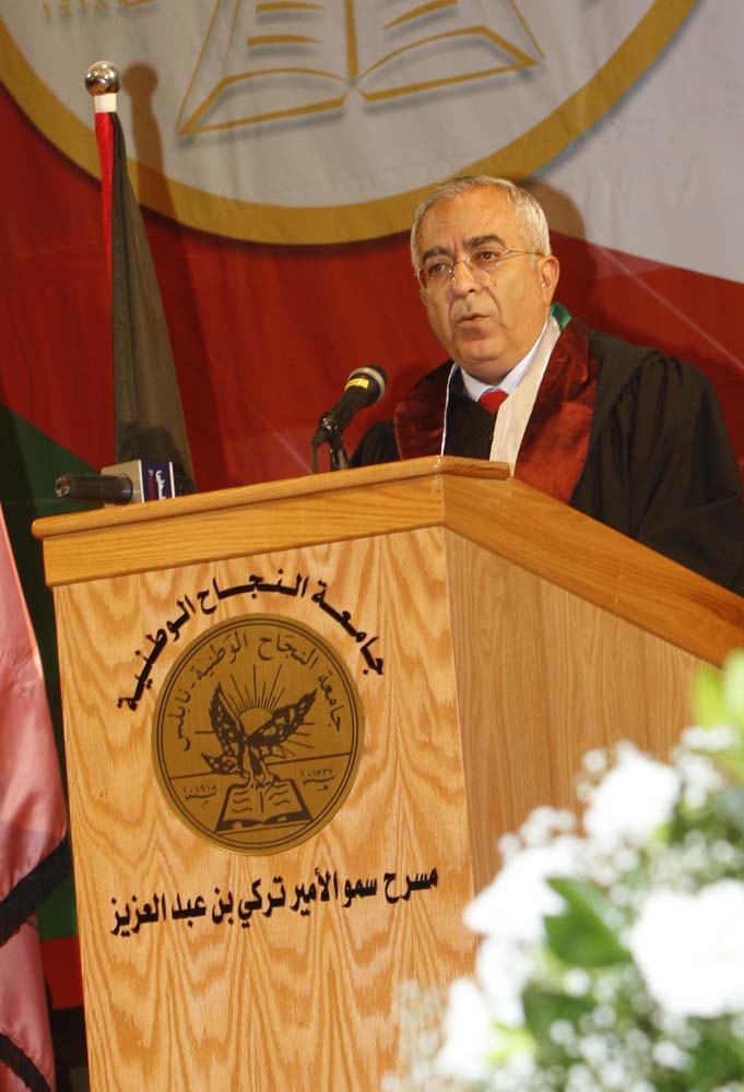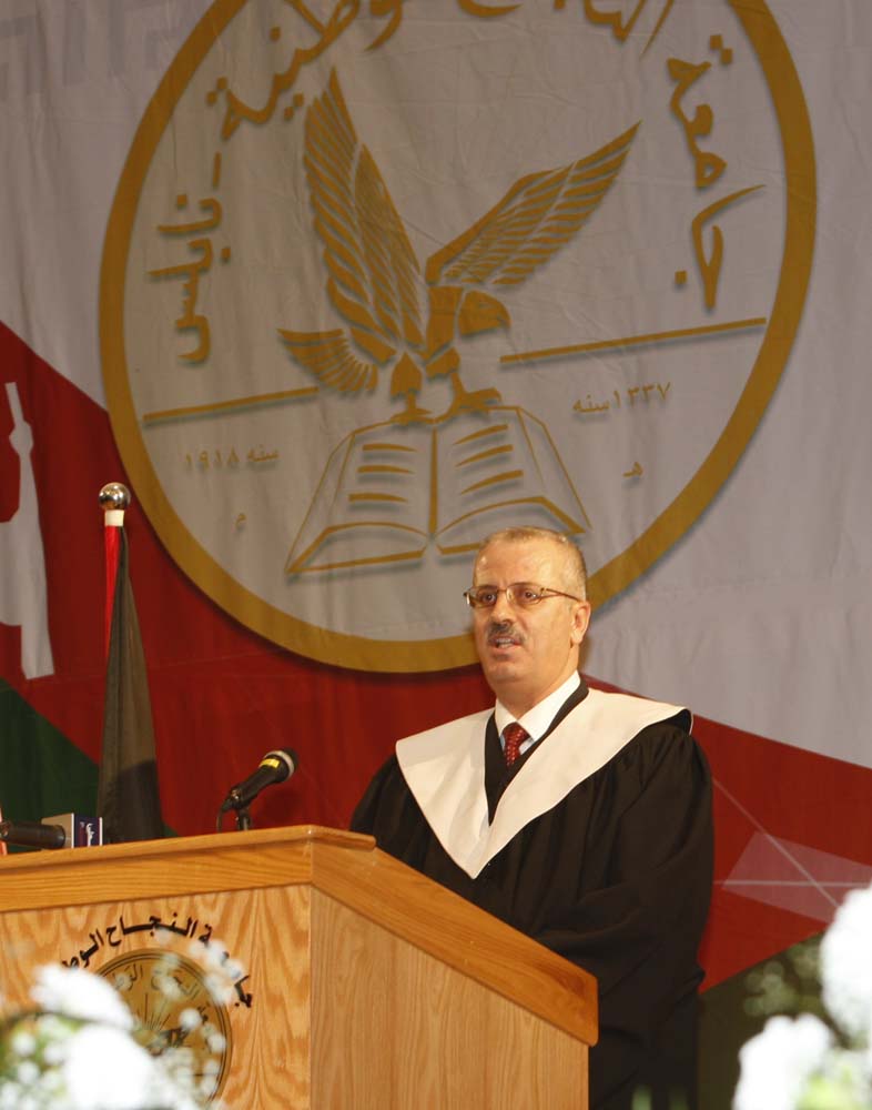 Prof. Hamdallah on his part welcomed the guests and congratulated the students describing them as the future of the present and the builders of the coming state. He also thanked the Palestinian leadership represented by President Mahmoud Abbas and Prime Minister Dr. Salam Fayyad for their continuous support of the educational process in Palestine. He further spoke about the different developments that the University has achieved with respect to academic programs, services, the building of new facilities, and the various kinds of scholarships that are offered to the students.