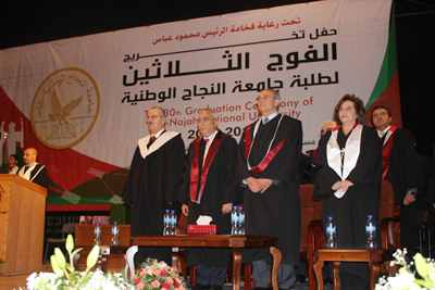 On Sunday, June 6th 2010, the University celebrated the 30th graduation commencement in a ceremony that was held at Prince Turki Bin Abdul Aziz Theater at the New Campus. The celebration was organized under the auspices of His Excellency President Mahmoud Abbas. Among the attendants were His Excellency Prime Minister Dr. Salam Fayyad, Mr. Sabih Al-Masri, Chair of the Board of Trustees, members of the Board, the University President, Prof. Rami Hamdallah, Ms Lamis Alami, Minister of Education and Higher Education, as well as a number of national figures, representatives of official and public institutions and others.