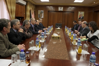 On March 10th 2010, the University President, Prof. Rami Hamdallah received the Palestinian Minister of National Economy, Dr. Hasan Abu Libdeh. Prof. Maher Abu Eid, Vice President for Academic Affairs, Dr. Shaker Bitar, Vice President for Administrative Affairs, Dr. Mohamad Hanoon, Vice President for Community Affairs and Dr. Said Al Koni, Dean of Faculty of Economics, attended the meeting.