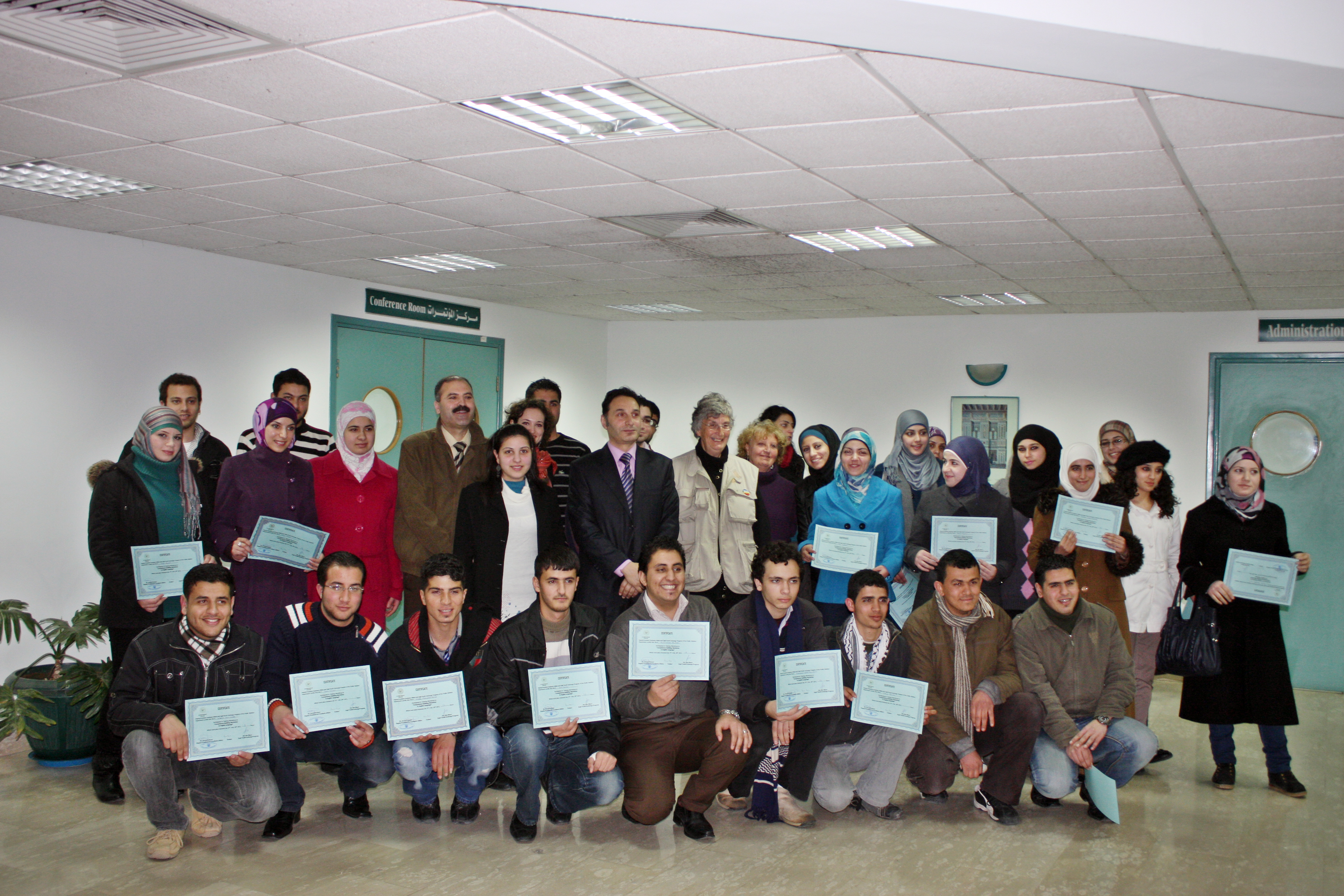 At the end of the ceremony certificates of appreciation were presented to the students by trainer Feri, Mr. Rafe’ Daraghmeh, Director of An-Najah Alumni Association, as well as Mr. Alaa Abu Dheer, Coordinator of the International Youth Exchange Program (Zajel).