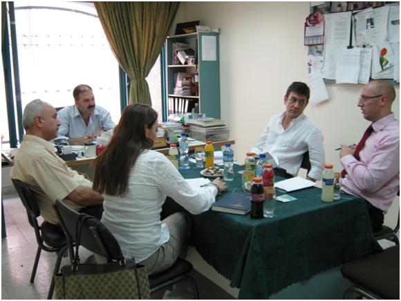 On October 4th 2010, UNIMED Director Marcello Scalisi visited An-Najah National University. The University was represented by the UNIMED Regional Office and the International Relations Office. Attendees included Mr. Rafe Daraghmeh, Director of the UNIMED Regional Office, Dr. Khaled Eleiwi, Scholarships Coordinator at the University, Prof. Kheld Al-Sahili, Director of the Construction and Transportation Research Center, and Dr. Marwan Haddad, Director of the Water Quality and Resource Management. The main objective of the meeting was to discuss the future of the UNIMED Regional Office and opportunities for project cooperation, including TEMPUS MEDA and ENPI CBC and other ventures of interest. Furthermore, Mr. Scalisi discussed a new initiative on tourism in Palestine that is currently underway and invited An-Najah to cooperate.